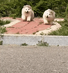 말라뮤트 새끼두마리가 나란히 그네 타는게 너무 웃겨 >.<