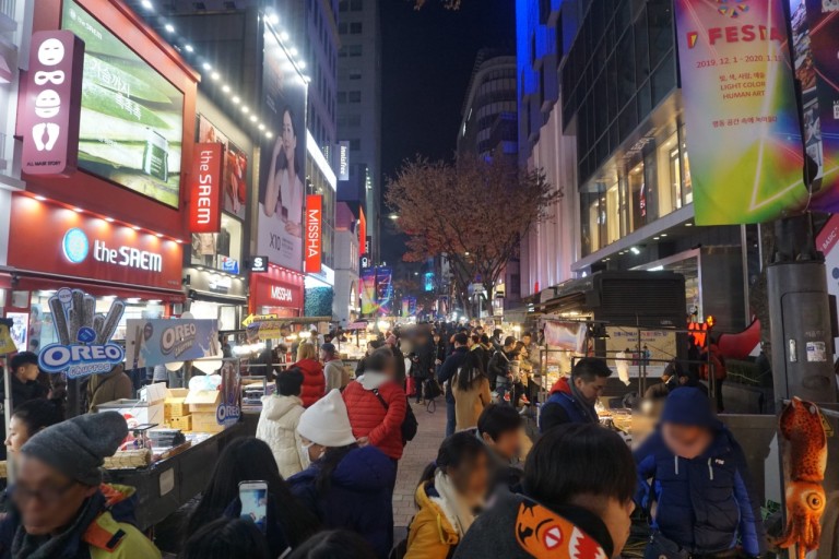 쇼핑과 음식을 즐기기 좋은 화려한 명동은 서울의 중심지로, 다양한 상점과 먹거리가 가득해요.