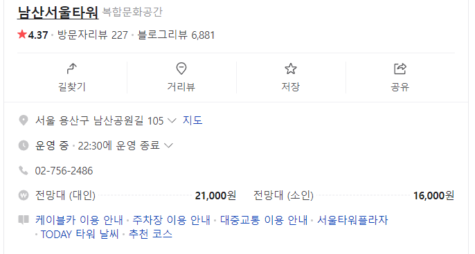 남산타워 홈페이지 : www.seoultower.co.kr
