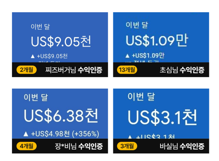아로스님의 강의를 듣고 애드센스를 하시는 제자분들의 수익인증을 올린것이에요