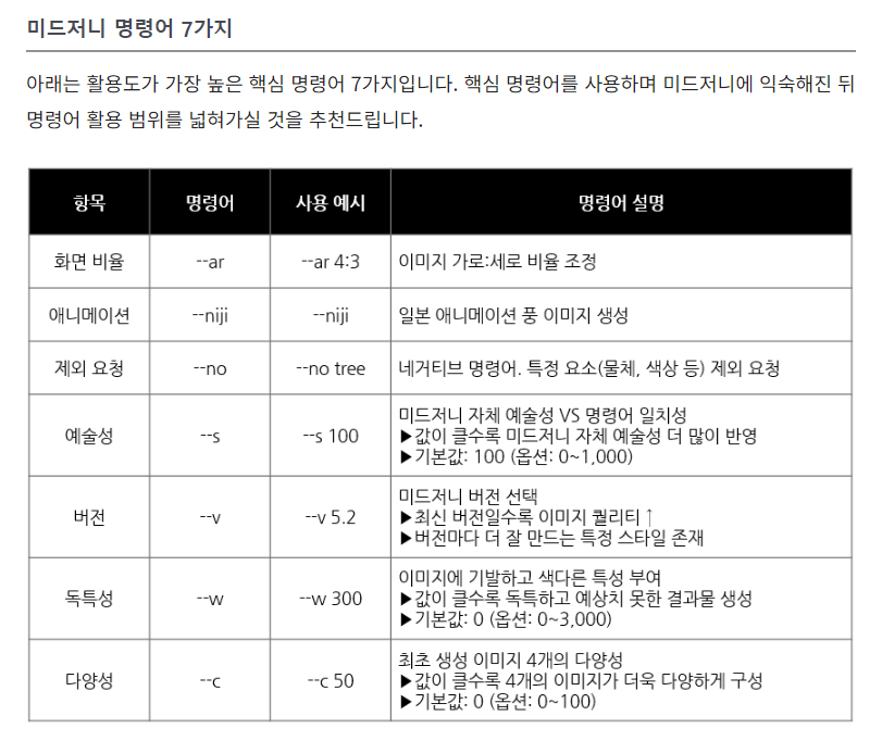 ☆ 미드저니의 명령어 ☆